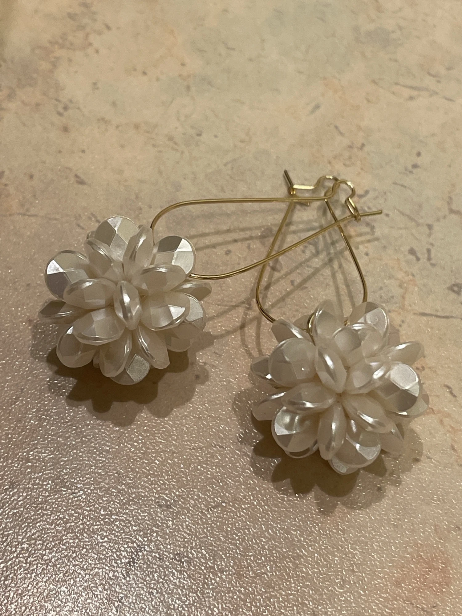 3D pearl-resin petals on a graceful gold hook - lightweight romance for the modern woman.