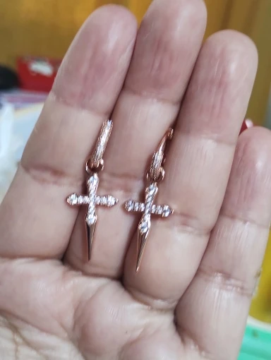 Magnificent earrings, one of the most beautiful in this store! neither big nor small, the stones shine, the pendants resemble the card suit of trumps. The quality is excellent, the locks work smoothly until they click. I definitely recommend it