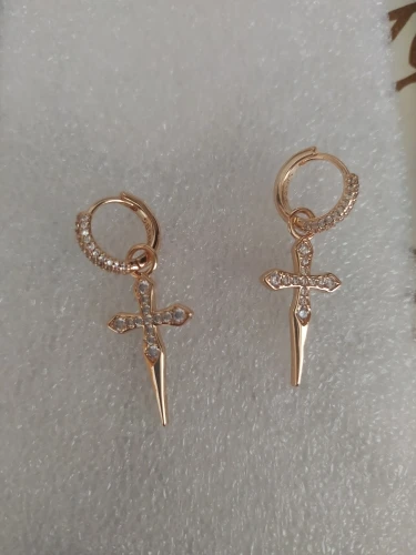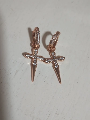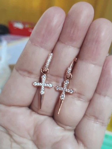 38mm rose gold cross earrings fully adorned with natural zircon stones, combining symbolism with sparkling beauty.