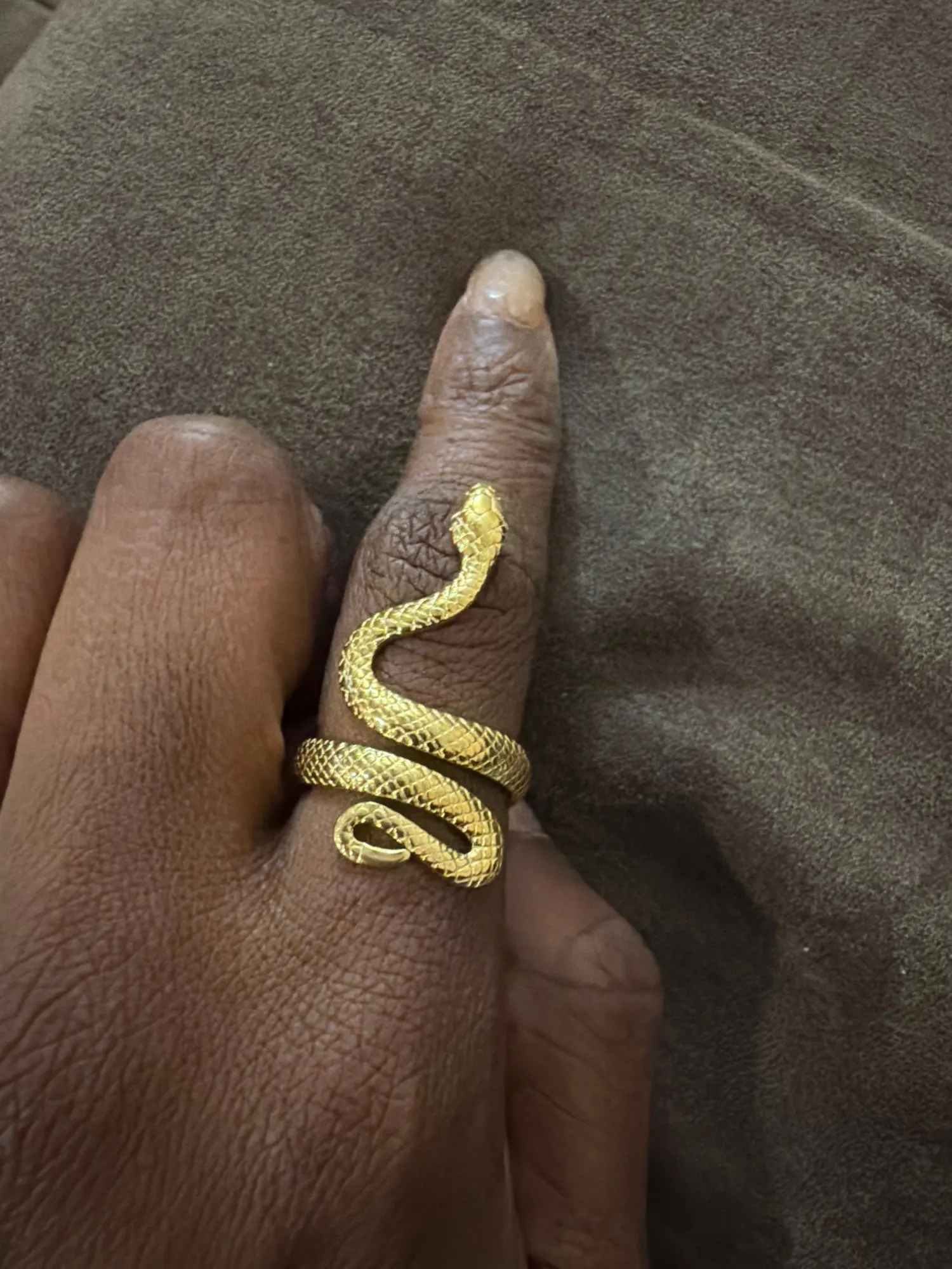 An emblem of passion and wisdom. This intricately crafted serpent coils around your finger in a symbol of eternal love, meticulously sculpted in sterling silver and adorned with 18k gold plating.
